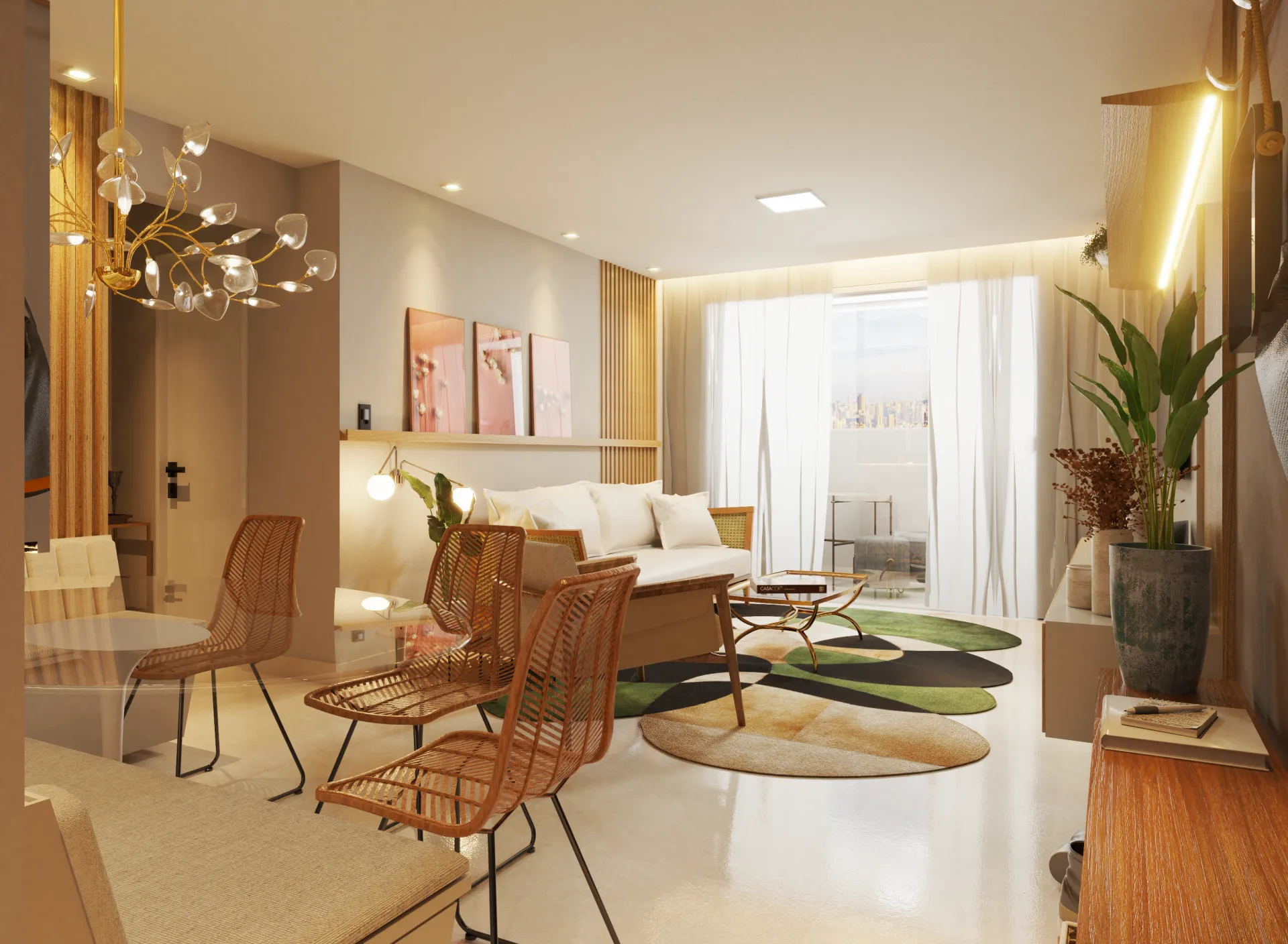 Para o projeto do empreendimento Residencial Oriente que criamos as imagens virtuais, todos os detalhes, desde a iluminação até os revestimentos, ajudaram a contar uma história e a deixar o ambiente mais harmonioso.